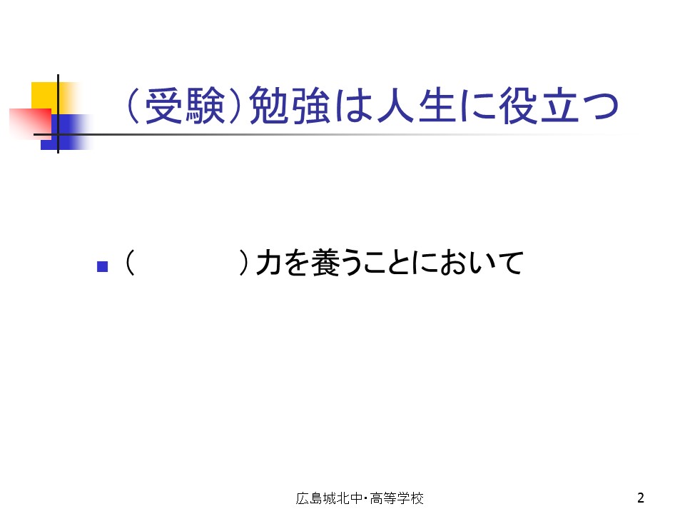 4月20日(火)から3日間、午後の時間を使って学年懇談会が開かれました。その冒頭で挨拶もかねて、保護者の方へメッセージを送らせていただきました。最後までご清聴いただきありがとうございました。その時のレジュメを掲載します。ご参考にしてください。