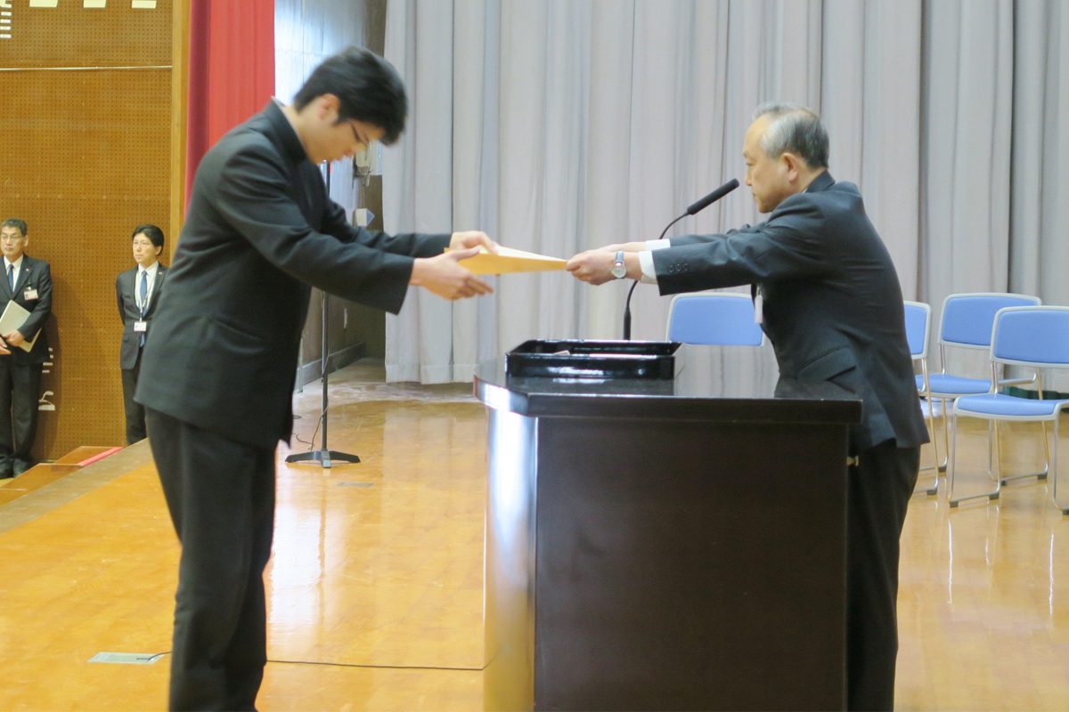 式に続いて、先日、メイプル賞を受賞した高3の長田和樹君の表彰を行いました。