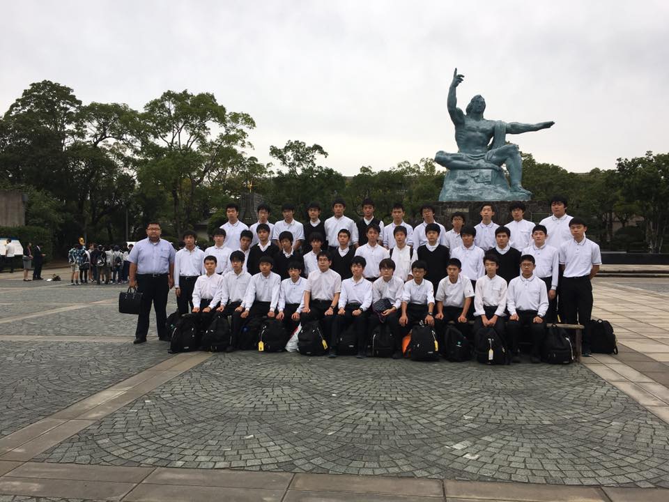 長崎港を定刻に到着し、港からバスで平和公園に向かいました。平和公園では、クラス毎に記念写真を撮影しました。修学旅行最後の夜は、長崎市内の「長崎にっしょうかん」に宿泊します。