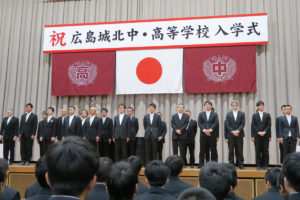 中・高入学式を挙行しました。岩本校長の入学許可宣言、式辞に続いて、高橋慶君が新入生を代表して力強く入学の決意を述べました。