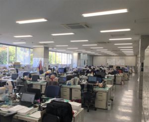 城北の職員室には中1~高3の教員全員の机があります。