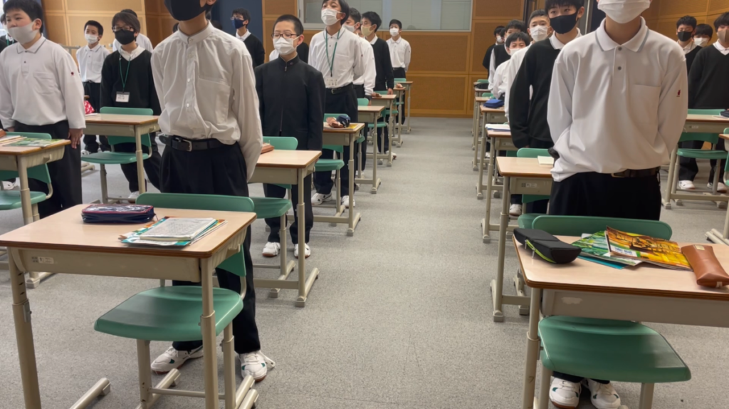 この校歌に込められた思いを、入学して間もない中1生に説明してから早1か月。遂に各クラス校歌のテストを行いました。