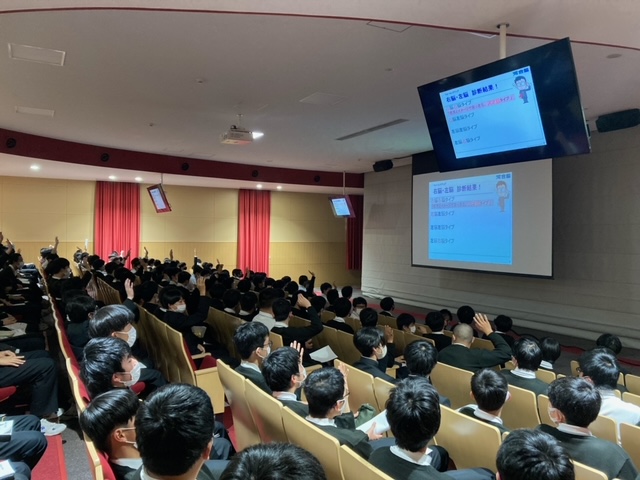 行きたい大学を選ぶことができるからこそ,いまから受験までの期間にできることをポジティブに考えて取り組む姿勢や方法まで,具体的な例も織り交ぜてお話しいただきました。講演後は前向きになった生徒も多く,気合を入れなおして改めて意思を固めていました。