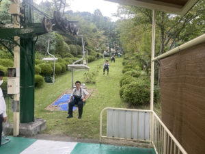 新幹線で新神戸へ移動した後、バスで天橋立まで移動しました。天橋立名物『股のぞき』で景色を楽しんでいます。