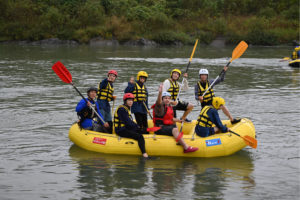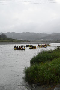 3日目は長野県飯田市内でリンゴ狩りと天竜川のラフティング(川下り)を体験しました。天竜川の川下りは江戸時代の物資輸送に由来するレクレーションだそうです。また、リンゴ狩りでは「信濃スイート」という品種をカゴいっぱいに収穫しました。小雨模様ではありましたが、無事にプログラムを進めることができました。今夜は昼神温泉郷で宿泊します。