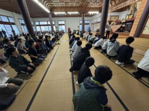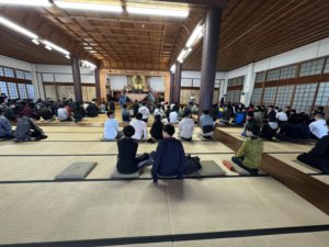 あいにくの雨天で午後からの予定を変更し、神勝禅寺で、座禅体験を行いました。