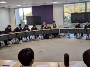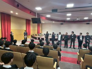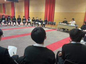 昨日20日(木)、中学三年生は進路学習の一環としてOBの方10名をお招きし、進路学習会を行いました。まずは教頭先生のお話があり、その後竹下先生より各OBの紹介、そしてグループごとに分かれての懇談会となりました。生徒たちも積極的に質問をし、自らの進路に向けて学習を深めることができました。様々な職業に就く先輩方のお話を聞き、それぞれの職業選択の一助になってくれればと思っております。
