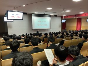 高校生活は「選択」の連続です。自分たちが自ら選んだこの広島城北での3年間を、より価値あるものにするために環境が変わった今こそ、「自分を変える」チャンスと捉え、日々の基本を積み重ねていくことが伝えられました。