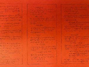 第52回ふれあい書道展において、書道部2年筒井泰貴君の作品が最高賞である広島県知事賞を受賞しました。 作品は平安時代に書かれた中務集で、鋭く直線的でシャープな書き味が特徴的な作品です。 その特徴をうまく捉え、濃いオレンジ色の紙に濃いめの墨で一気に書き上げた快作でした。 この受賞を励みにさらに上を目指して活動に取り組んでほしいと思います。