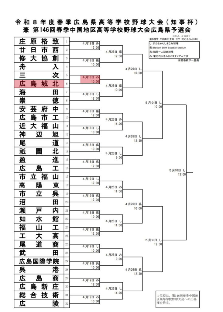 県大会1回戦は18日に三次高校と対戦します。