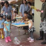 親子触れ合い遊びやピアノに合わせての表現遊びをしました。ビニール袋を利用した、風船作りやシャボン玉遊びも楽しかったです。返事も「はい」と言える姿がふえました。